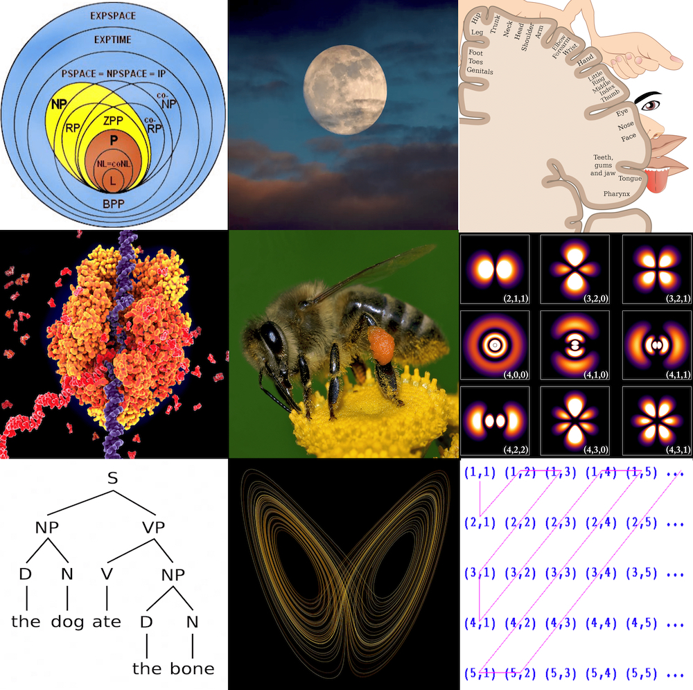 (i) the hierarchy of computational complexity classes (symbolized here just by the most common ones),